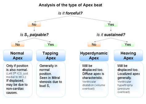 The character of the apex beat may provide vital diagnostic clues: A forceful impulse indicates volume overload in the heart (as ...
